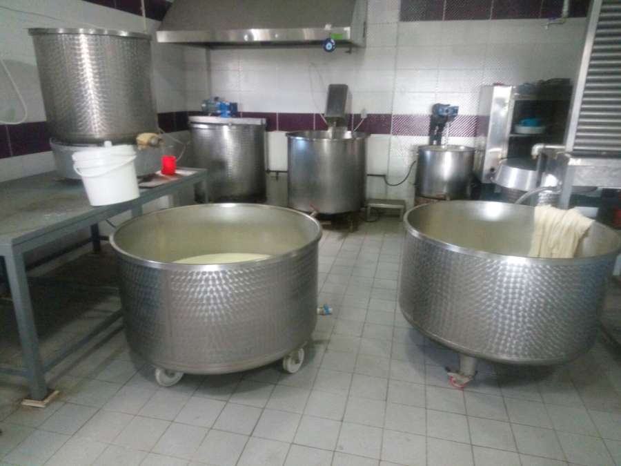 Peynir mayalama ve süt kaynatma kazanları, çalıma masası, Cunda ada süt ürünleri Mandırası.